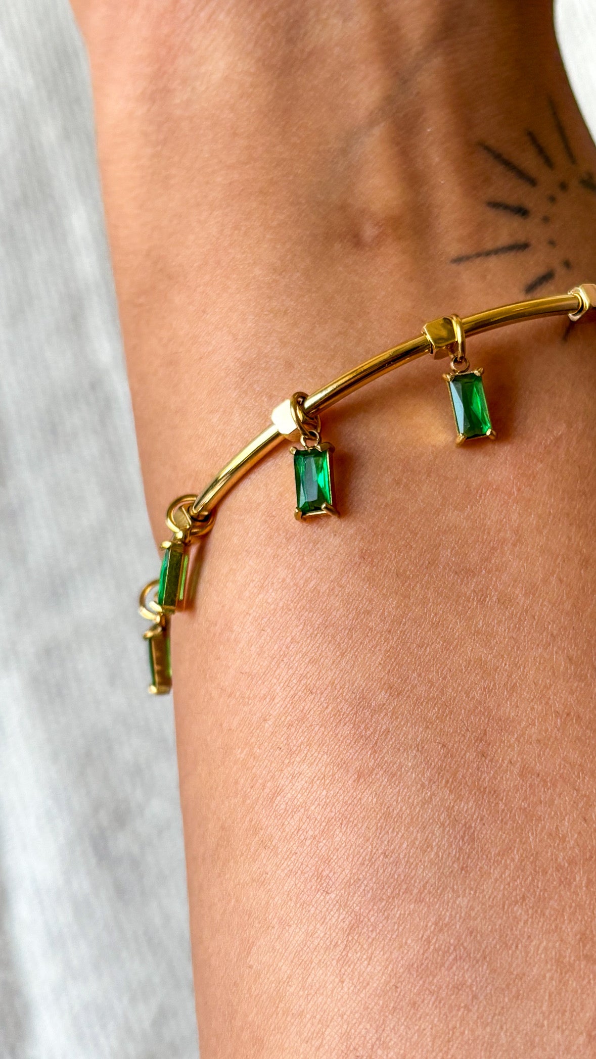 Elevate your style with this anti-tarnish bracelet featuring delicate emerald stone hangings.
