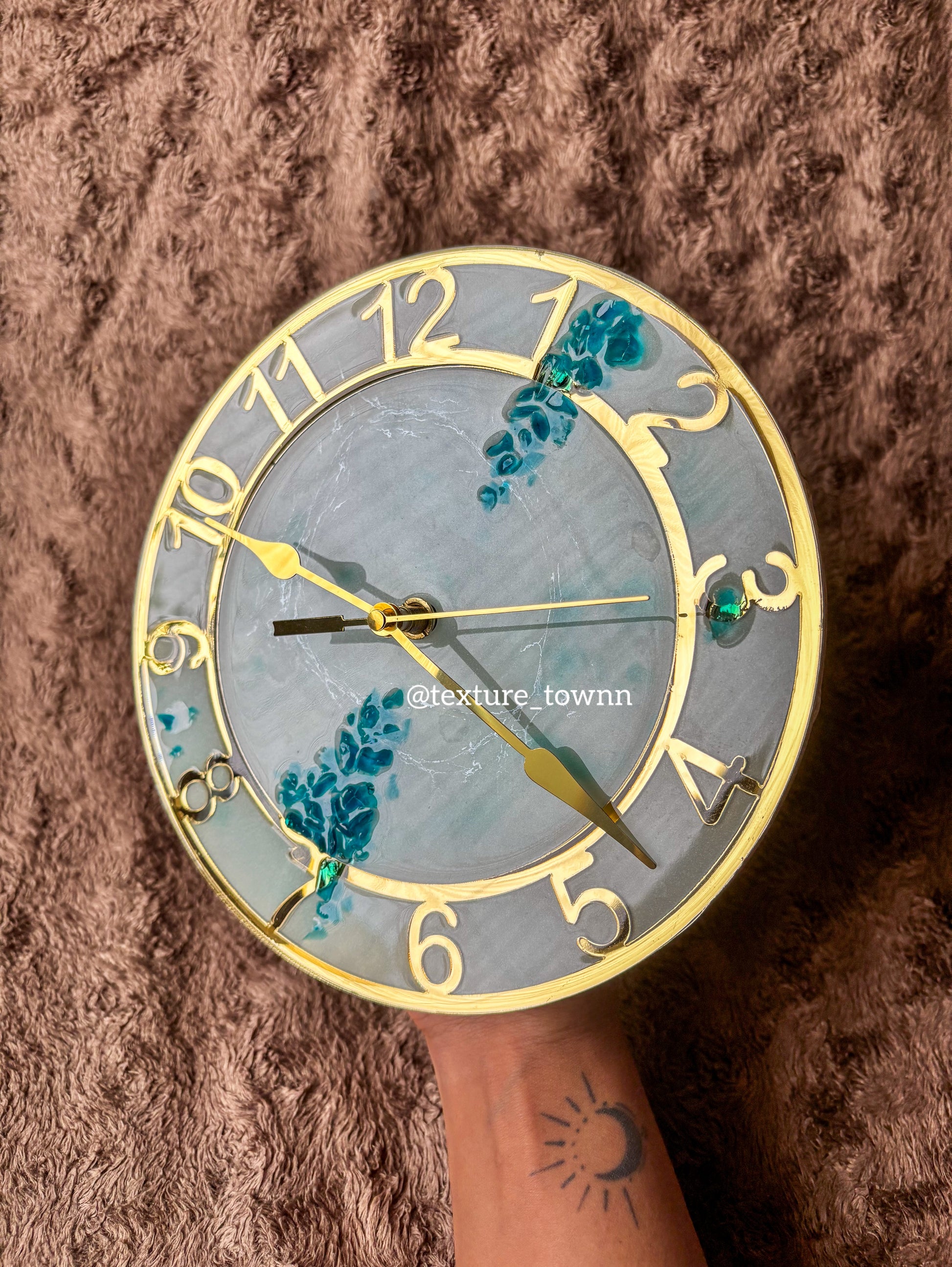 Handmade resin wall clock in ice blue & pearl white. A perfect blend of art and time, ideal for home décor, gifting & modern interiors.
