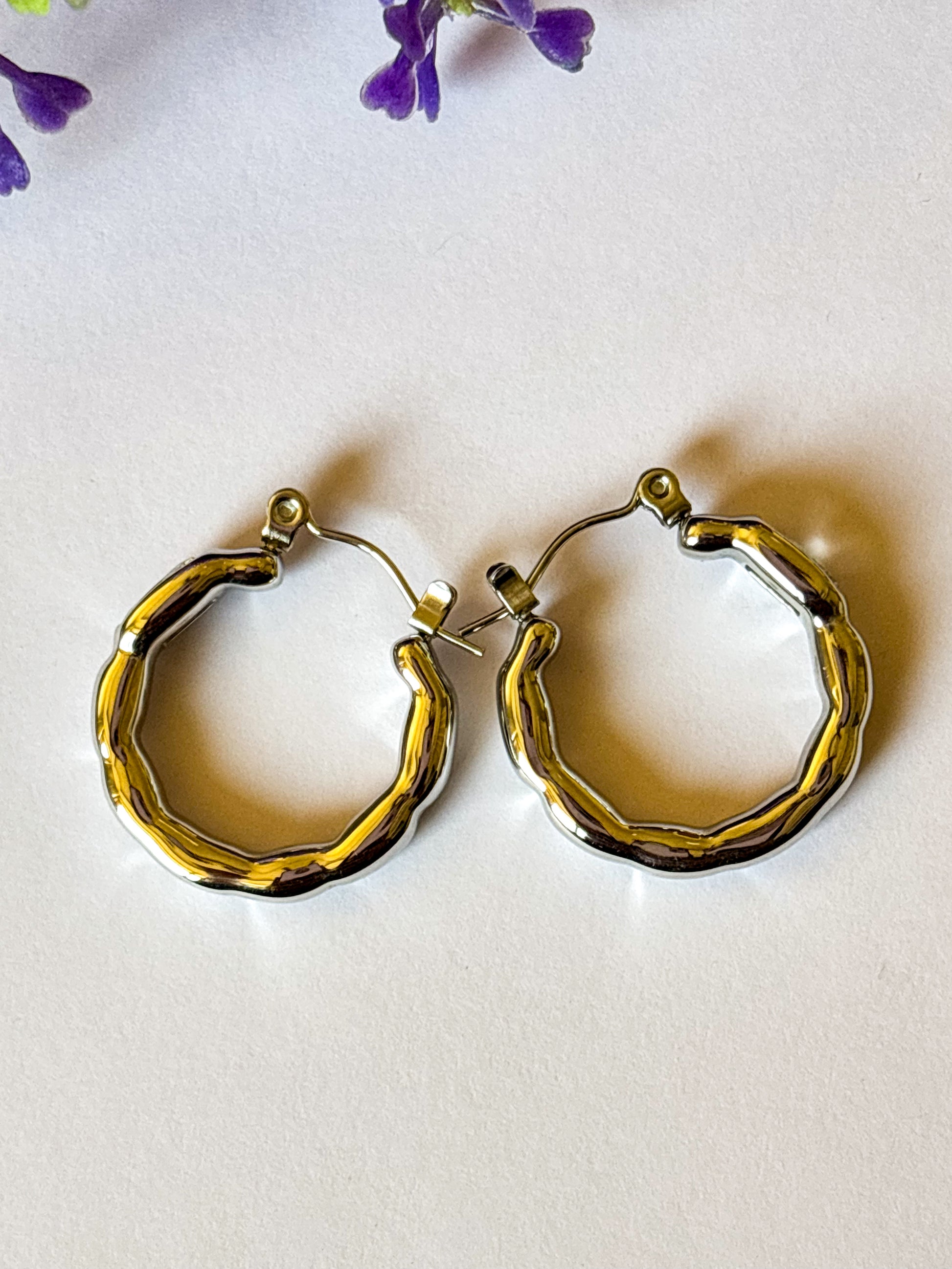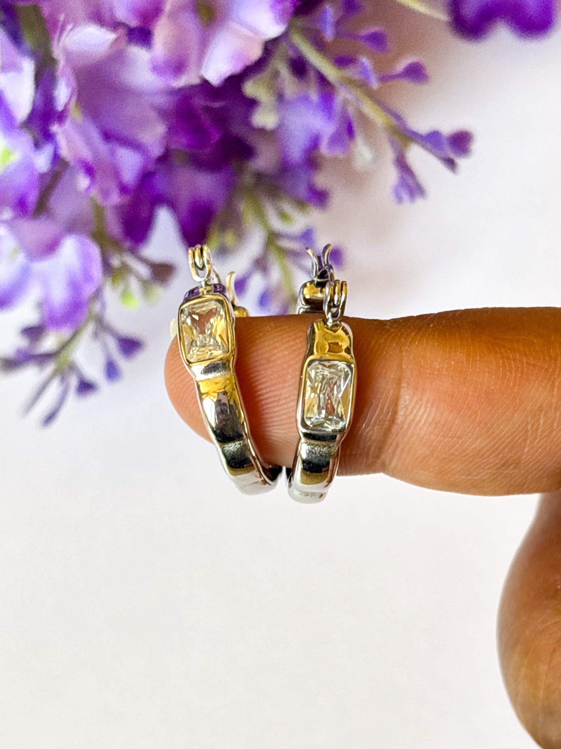Silver Hoops with White Stone Anti-Tarnish Stainless Steel
