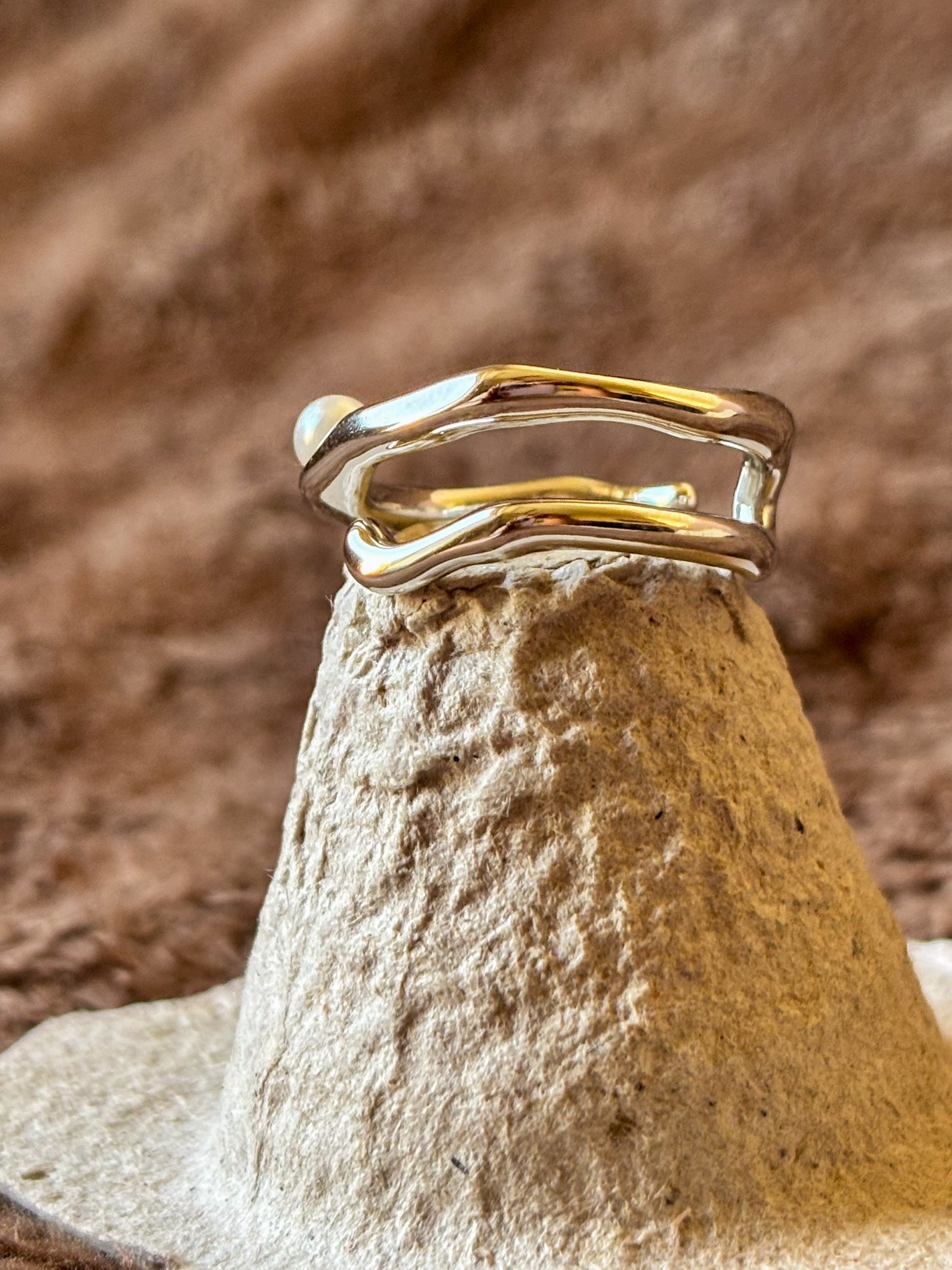 Elevate your everyday aesthetic with a piece that balances modern minimalism and artistic flair. This open-wrap ring features a fluid, "liquid metal" silhouette that mimics the natural flow of water, perfectly cradling a lustrous, high-grade freshwater pearl.